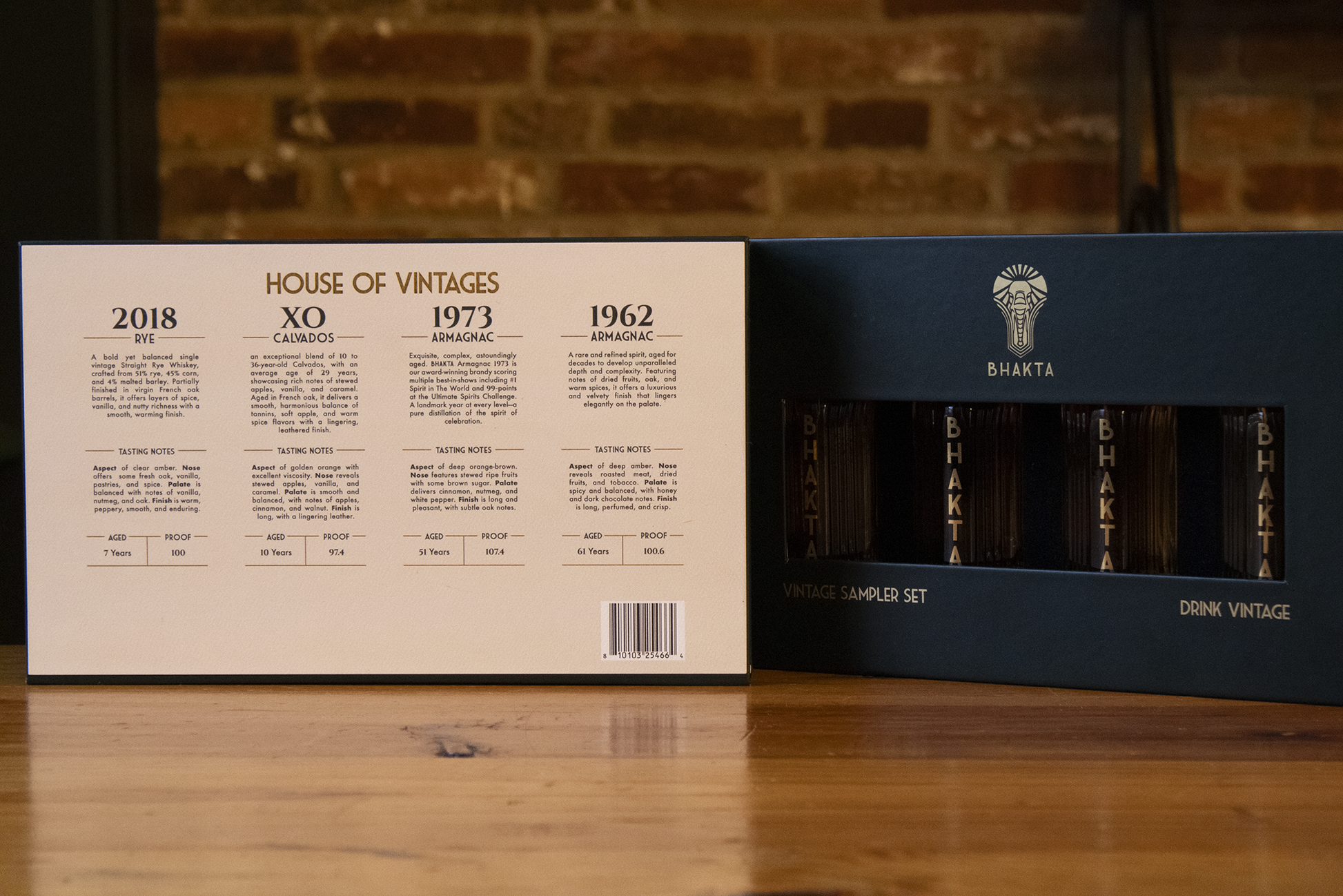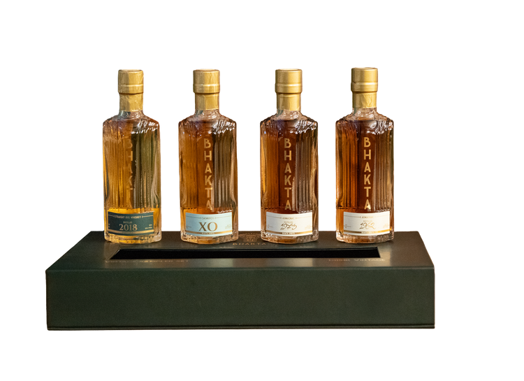 Experience the rare opportunity to taste history one layer at a time. The BHAKTA 1928 Deconstructed Sampler presents four exquisite 50ml selections that reveal the individual vintage components behind our monumental BHAKTA 1928 blend.